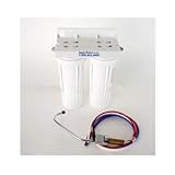 This double under sink water filter features a KDF/GAC cartridge PLUS a special contaminant filter cartridge! Doulton Sterasyl ceramic pre-filter to effectively remove harmful bacteria, such as E. Coli, Fecal coliform, Samonella, Streptococcus, and cysts (Cryptosporidium, Giardia), and sediment down to 0.9 micron. The cartridge can be cleaned up to 30 times (about once a month). This twin undercounter filter features our long lasting KDF/GAC cartridge (12,000 gallon rating) includes standard faucet chrome with black plastic tip and handle, 8.75" tall and has a swivel spout with a reach of 5.5", "EZ valve connector, high pressure polyethylene tubing, mounting wall bracket, and housing wrench. Quick-connect fittings make installation a snap! This undercounter filter is placed out of the way, under the sink. It connects to the cold water line with an "EZ valve connector" and dispense water through an attractive long reach LEAD-FREE brass faucet. Quick-connect fittings make for fast, easy installation. A 1/2" hole is all that is needed for the faucet stud (all series), but a cover plate is included to accommodate larger pre-drilled holes. 12" tall, 10" wide, 5" deep. 3 year prorated warranty on KDF cartridge, 5 year on components. Includes chlorine test strips to verify when it's time to replace cartridge.